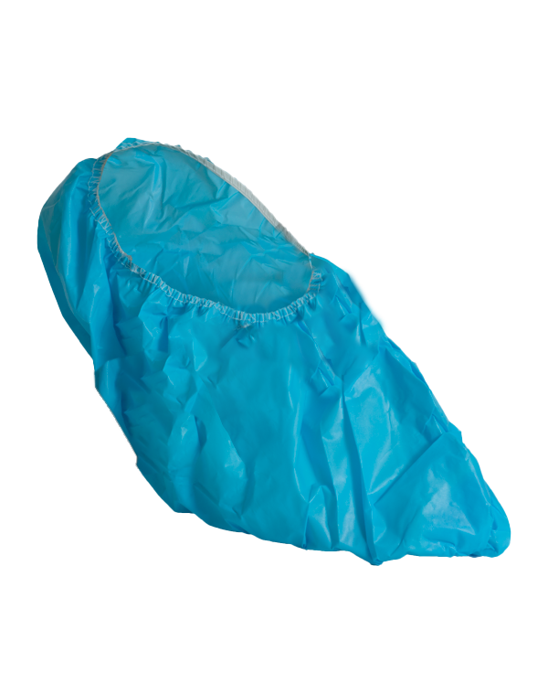 Lint free / latex free shoe cover with internally sewn elastic bottom seam. Constructed from a heavy weight polyethylene film for added strength and durability. Embossed texture for added skid resistance. For use in critical and low particulate clean environments, and many general industrial applications. Fabric is suitable for exposure to bloodborne pathogens and some hazardous liquids. Serged seam.